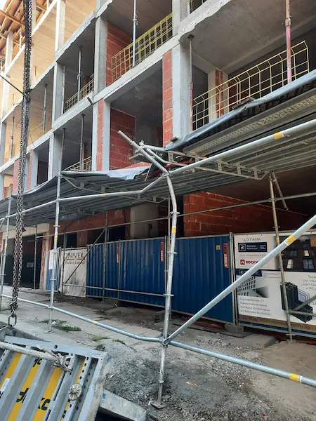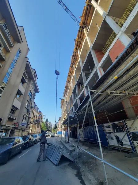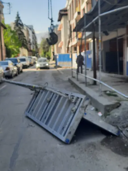 Тежък инцидент се размина на косъм в столицата, след като строителен кофраж полетя от петия етаж и се стовари директно върху пътното платно. За опасната ситуация информира очевидец чрез публикация в социалната мрежа Facebook.