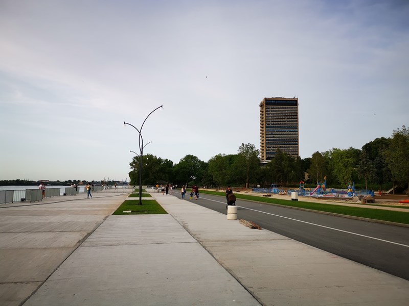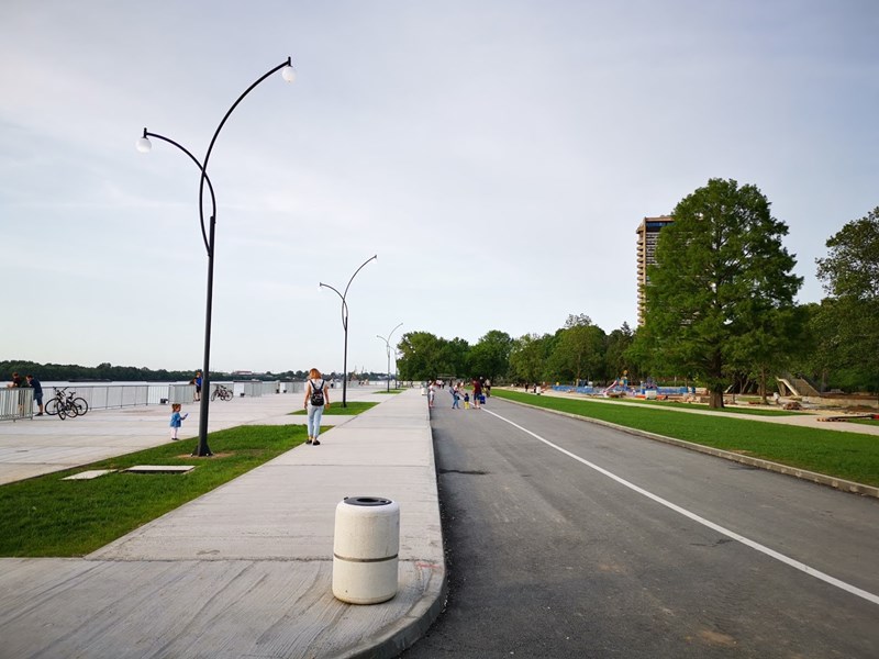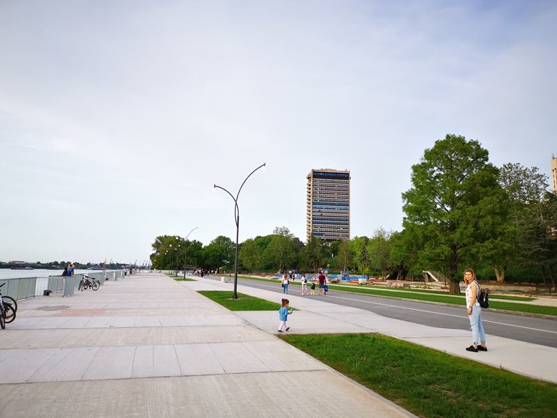 В момента се монтират детски площадки. И там има проблем! Те са от най-евтините, дето няма да издържат по-дълго от месеци, не са предвидени места за игра на по-големи деца, т.е. там могат да се забавляват само малчугани под 5 годинки. А какво да правим с останалите деца…..? Освен да ги караме да хвърлят бетонни павета и камъни в Дунава.