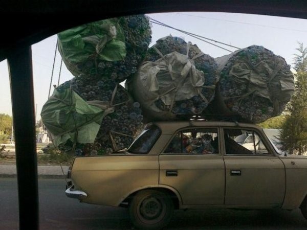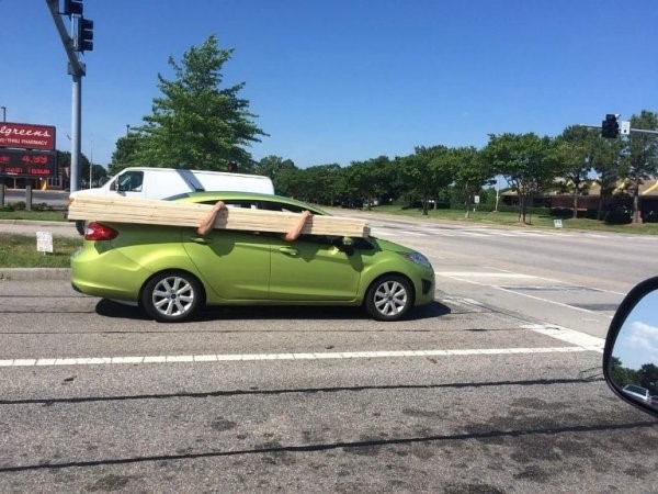 Горе-долу така изглеждат понякога колите в България, когато превозват по-дълъг или голям товар.