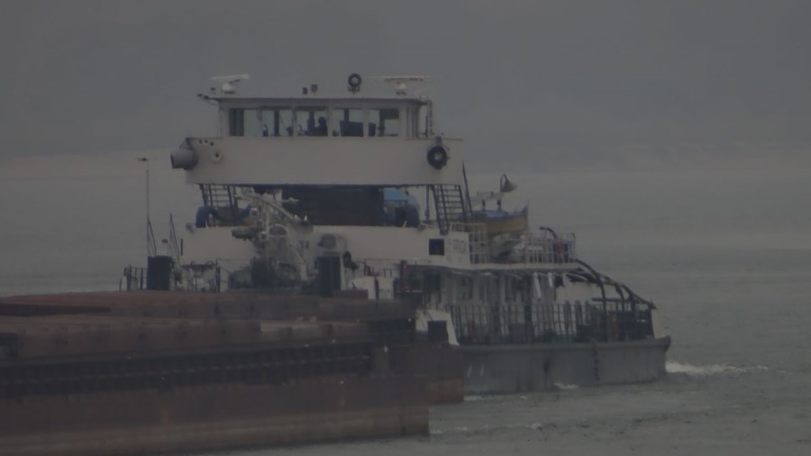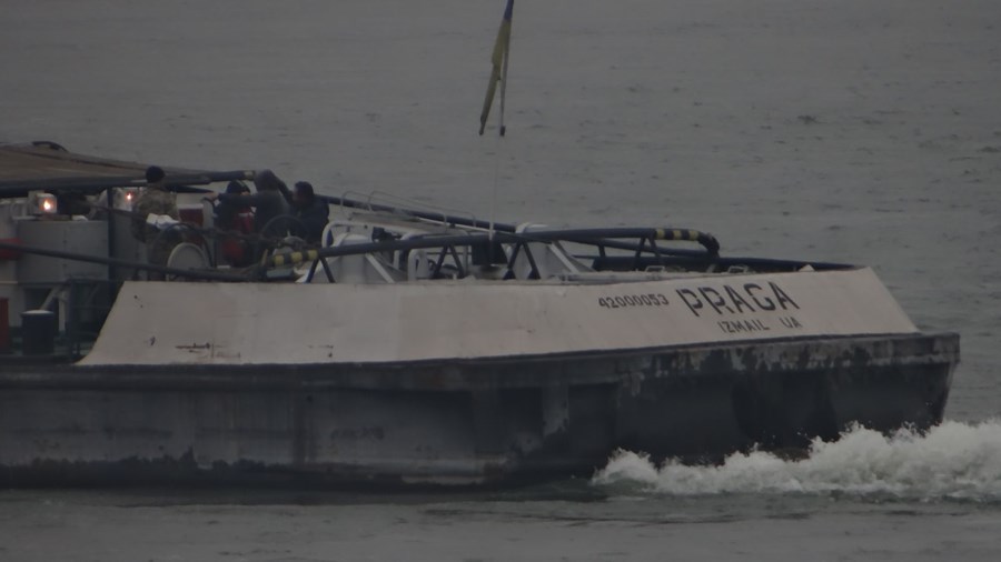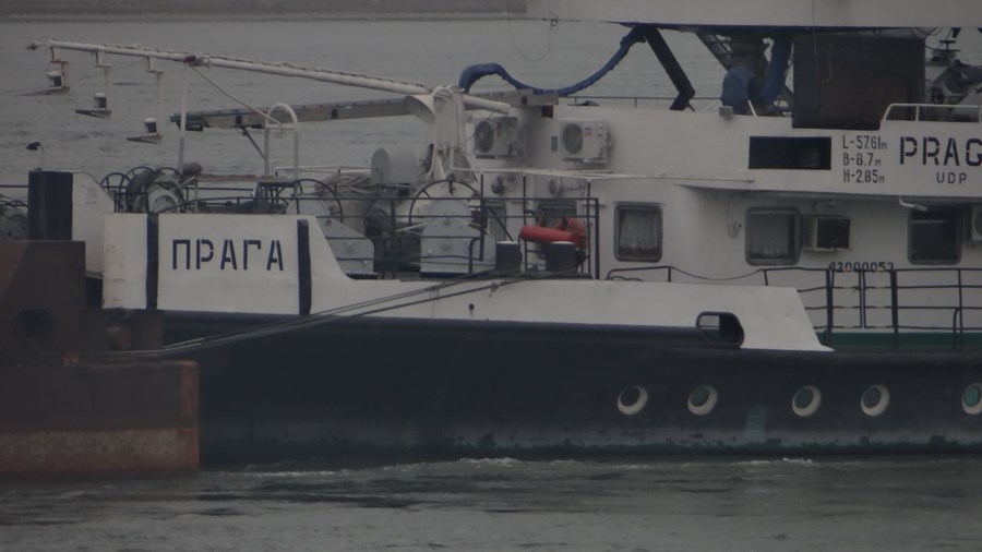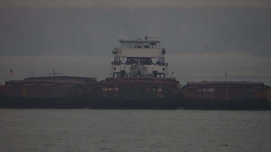 На Украйнското държавно параходство. Тласкащ три стари секции.