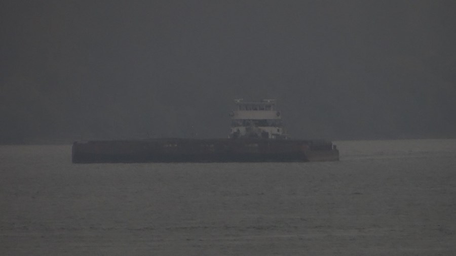 А над Дунав тъкмо се мръкваше. И ставаше направо зимно. Рибарите вече си тръгваха доволни от техния улов, оставаше само и ние да запишем "точка". Иначе за какво бихме целия този път. И ето - бавно, бавно, направо заспало, с минимална скорост, вече по-ясно се очертаха силуетите не на един кораб, а на цял тласкач, барабар с 3 секции. И каква бе изненадата ни, точно заради сумрака и заради лошото време, когато корабът пое рязко, с една маневра към брега. Направо мина точно пред обектива ни и позволи да се получат даже читави снимки. Не ни се мисли, ако не бе направил маневрата и бе минал стандартно - по средата на Дунава. Да, в лятно и хубаво време щяхме да го "хванем", но в тази мъгла и този полумрак - абсурд.