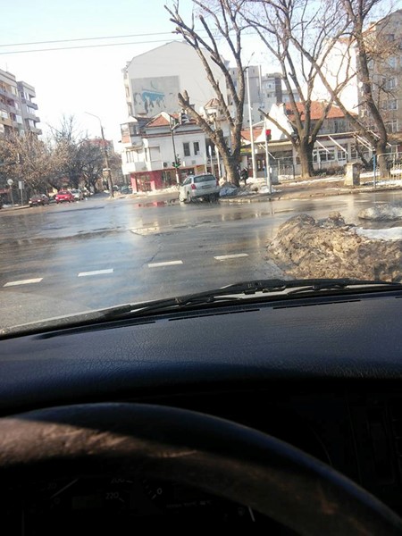 Човекът си оставил колата в голямата локва, може би очаква че ще "спре" служителите от общината.