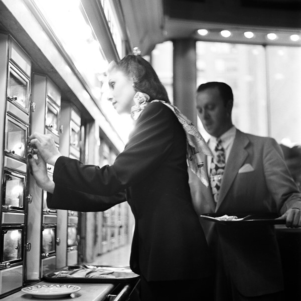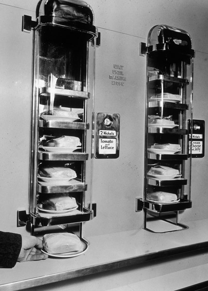Механизмът е следният – клиентите пускат стотинки отстрани до избраното ястие и кутията се отключва. Този вид ресторанти са харесвани заради по-ниските цени и гарантираното качество.