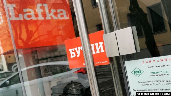 „Това сме ние и ценностите, които ни водят“ пише в своята статия за „Свободна Европа“ журналистката Полина Паунова. Слоганът е изписан на входа на централния офис на фалиралата в края на февруари тази година компания „Лафка“, която развиваше търговия с павилиони в цялата страна. Пред офиса на столичната улица „Княз Борис“ във вторник паркират два микробуса с бранда на веригата за продажба на битова техника „Техномаркет“. Близо до входа се вижда стикер, който показва, че обектът се охранява от фирма "ИПОН". А работници изнасят „остатъците“ от бизнеса на фалиралата фирма. Иронично, но „остатъците“ са картонени фигури в цял ръст на рекламното лице на „Национална лотария“ - актьорът Захари Бахаров.