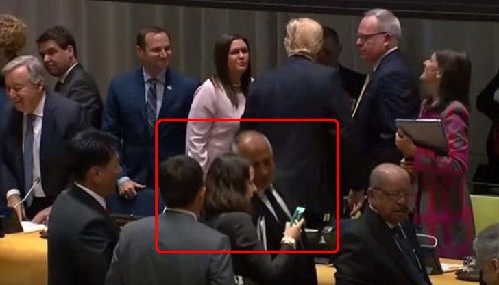 „От видеозапис на ООН се вижда как Борисов опитва да размени няколко думи с президента преди началото, но дама от протокола решително му препречи пътя с разперени ръце и той се върна обратно в залата. След закриването на заседанието премиерът, както сториха и редица други участници, се поздрави първо с Ники Хейли, а след това с решителен замах подаде ръка и на Доналд Тръмп. Двамата размениха няколко думи, заснети със смартфон от дама от екипа на Борисов. Веднага след това той прегледа записа, направен от неговата сътрудничка ”, пише Дневник и предоставя фотоси в потвърждение.