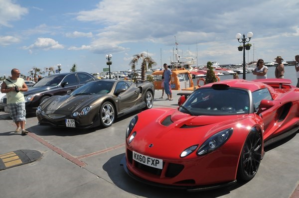 Братята Йордан и Динко Диневи шофират единственото в България Hennessey Venom GT. Червеният звяр събира очите на летовниците, минаващи край яхтеното пристанище на Свети Влас.