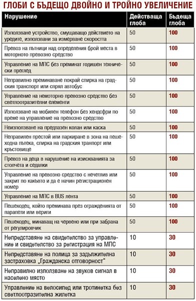 Според приетите на първо четене промени, водачите, които бъдат засечени с превишена скорост три пъти в рамките на една година, ще получават тройни глоби и ще остават без свидетелство за управление. Общините също получават право да налагат глоби въз основа на данни от собствените си камери.
