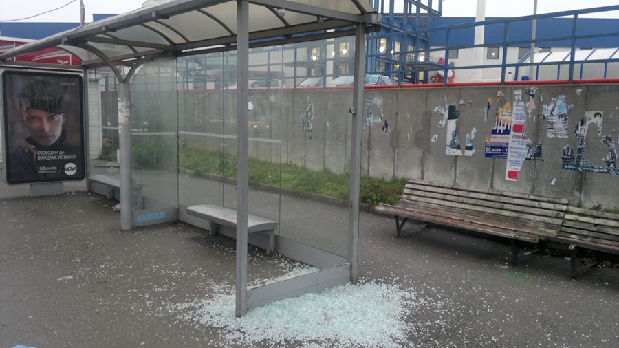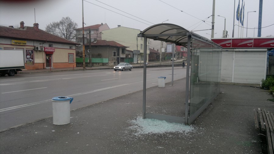 Новата автобусна спирка пред комплекс "Ялта" е потрошена от вандали през почивните дни.