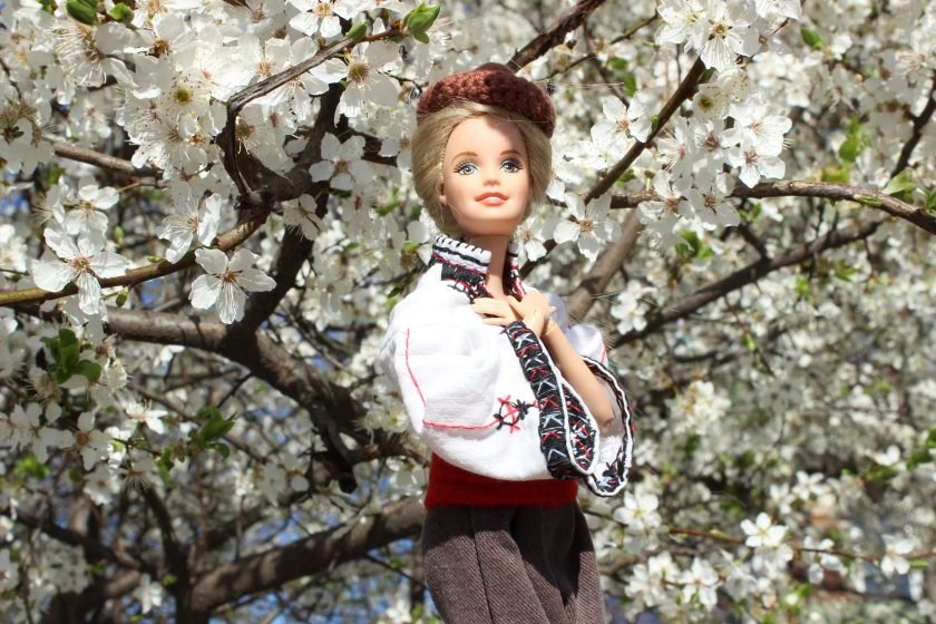 И не - "родина" за Барби не означава само баница, народна носия и традиции. Барби уважава миналото и живее сега. Гледа с ирония на света. И някой път действа въпреки. Въпреки общоприетото."Само мъже могат да бъдат кукери - тя беше кукер. Направих я кукер един ден. Само мъже могат да бъдат коледари - тя беше коледар. Хвърли се в реката за кръста", споделя Диана Петрова.