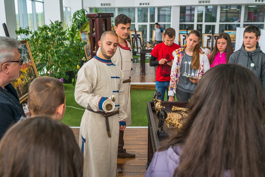 17:00-19:00ч.: Обиколка на изложбата с екскурзовод, завършваща със спектакъл "Войнски титли, организация и йерархия при древните българи".