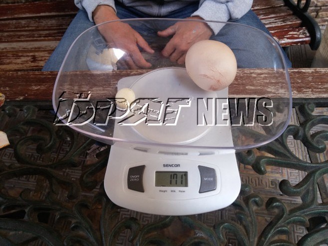 За сравнение, теглото на едно средно голямо нормално кокоше яйце е 60 грама, пише briagnews.bg