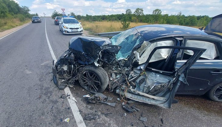Инцидентът е станал на обяд. Тогава на пътя край Хасково са катастрофирали лек автомобил Ауди и автокран.