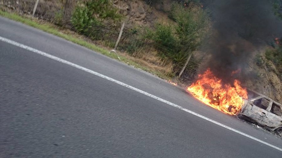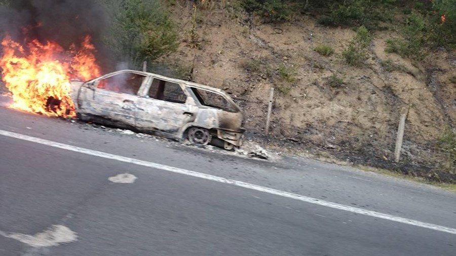Кола изгоря като факла на магистрала "Тракия"