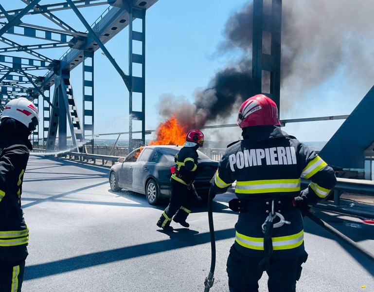 Автомобил с румънска регистрация изгоря в средата на Дунав мост днес следобед. Пожарът вече е потушен и няма ранени.