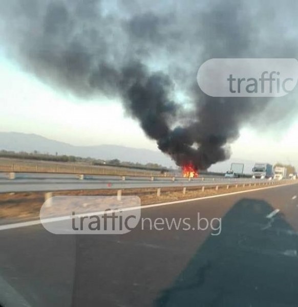Автомобил избухна в пламъци на магистрала „Тракия”.