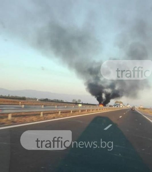 Няма пострадали, но инцидентът затрудни движението при 102-я километър на аутобана в посока Пловдив.