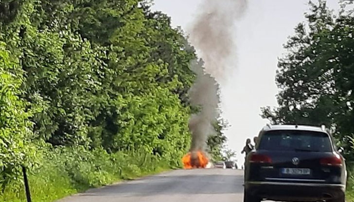 Лека кола "Сеат" изгоря на пътя Русе - Червена вода днес следобед.