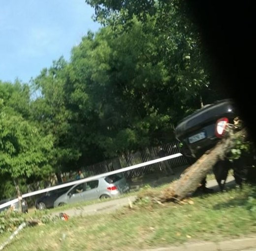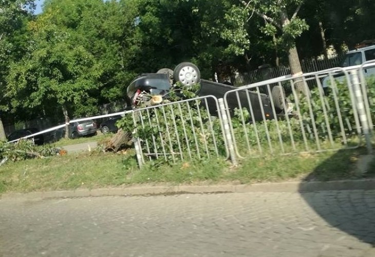 От кадрите се вижда как кола се е обърнала в локалното, като буквално е прекършила дърво встрани от пътя.