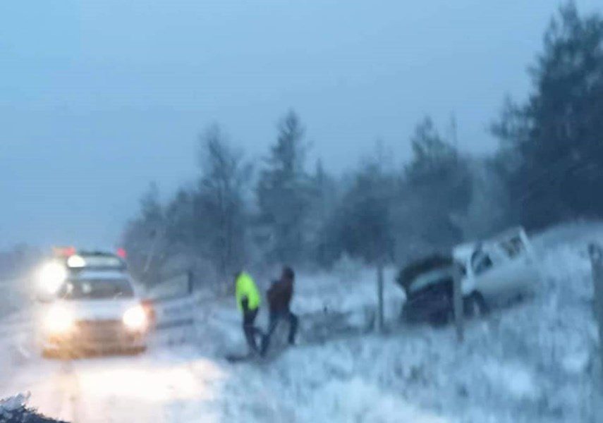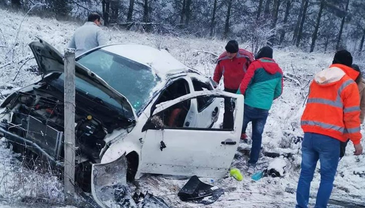 Младата жена е с охлузвания в областта на ръката и главата, без опасност за живота. Най-вероятната причина за катастрофата е несъобразена скорост и хлъзгав път.