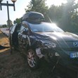 Кола е излетяла от пътя и „кацнала“ върху мантинела.