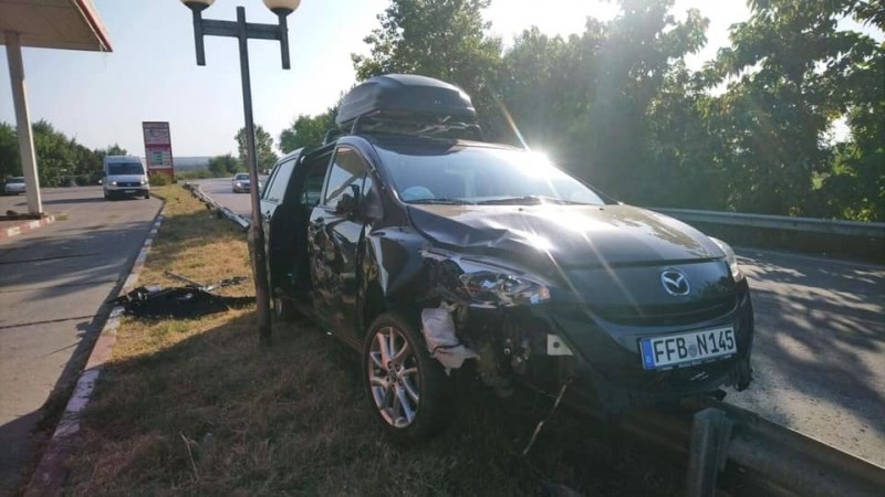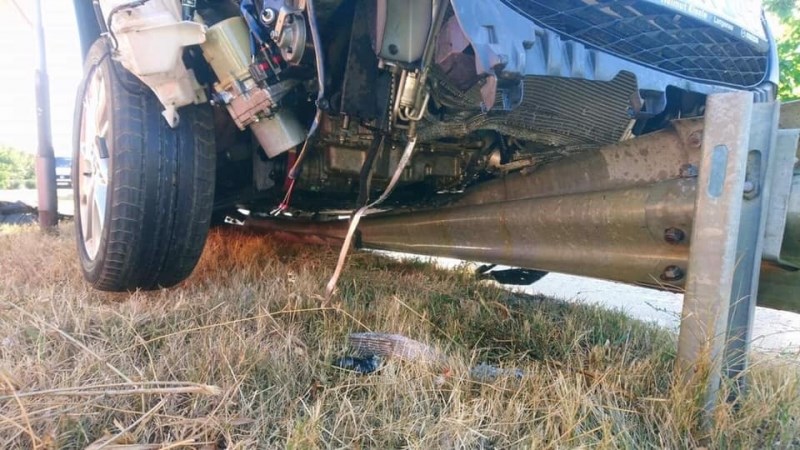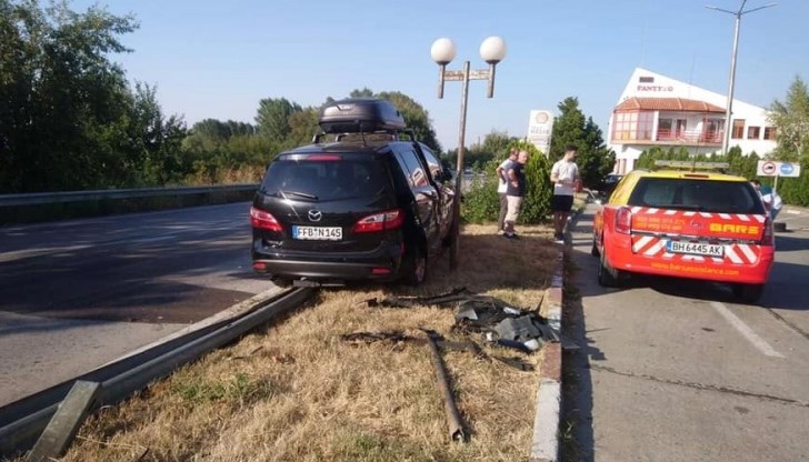 При инцидента няма пострадали хора, нанесени са само материални щети по колата и пътното съоръжение.