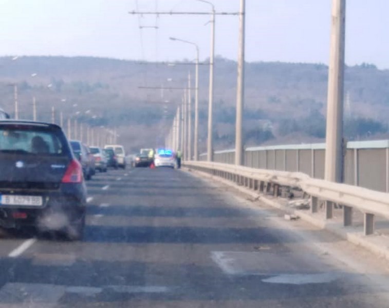 Катастрофа блокира Аспаруховия мост във Варна тази сутрин.
