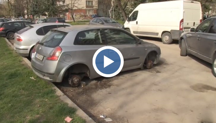 Лек автомобил „Фиат“, паркиран пред жилищен блок на ул.“Плиска“, осъмна без четирите си гуми.
