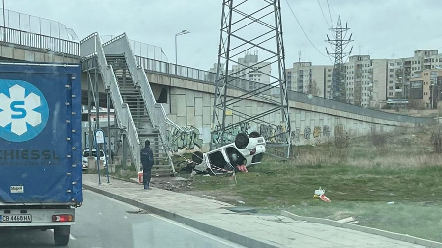 Кола падна по таван от моста на кв. "Филиповци", в района на Околовръстното в София.