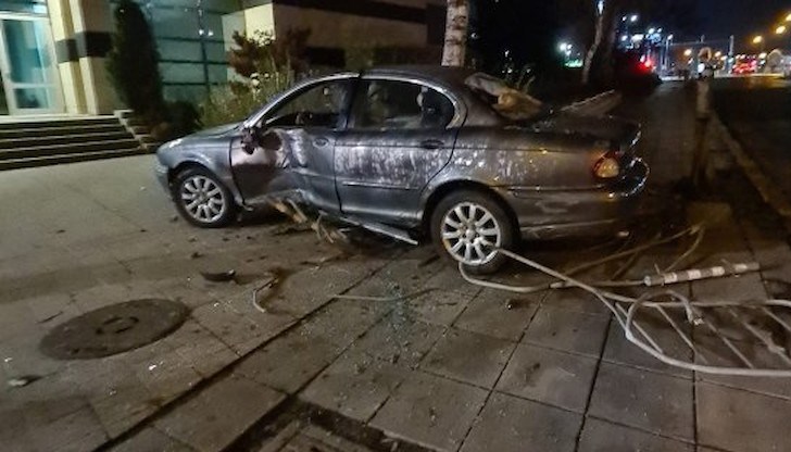 Автомобилът е отнесъл загражденията и е спрял пред банка на булевард "Г. М. Димитров"