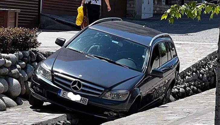 Колата е „нагазила“ в декоративния канал, красящ улицата в близост до музея на Паисий, информира Infomreja.bg.
