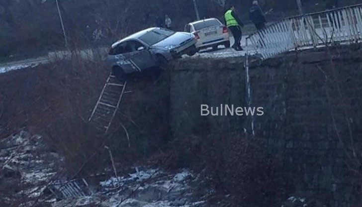 Лек автомобил „Форд“ с врачанска регистрация виси над река Лева край Враца, научихме от информационна агенция BulNews.