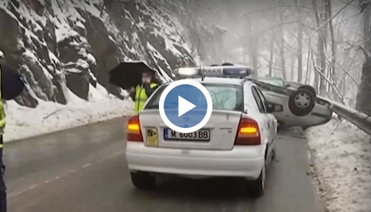 Кола се преобърна по таван на около километър под прохода Петрохан. Шофьорът не е пострадал сериозно и беше прегледан от лекари на място. До инцидента се е стигнало, след като дърво се е свлякло пред колата. Мъжът успява да излезе през прозореца на автомобила невредим. Движението в едната лента е отцепено до изтеглянето на колата от пътното платно.