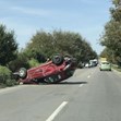 При опит за включване в движението от отбивка, сив Форд "Фиеста" не вижда движещото се червено Пежо с румънска регистрация. В следствие на удара Пежо-то се удря в мантинелата и се обръща по таван. В румънския автомобил са пътували две момичета, които са откарани за преглед в местната болница.