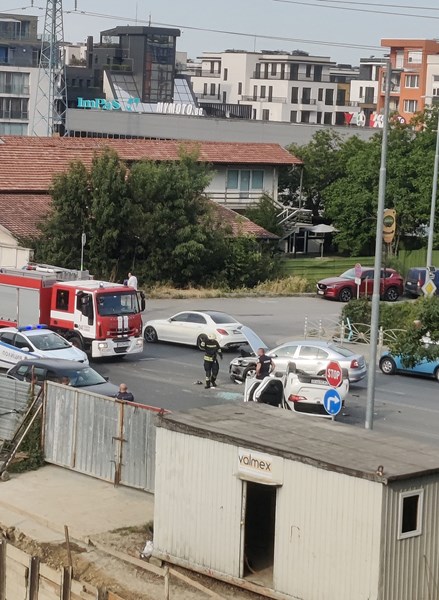 Кола се обърна по таван на столичния булевард "Черни връх".