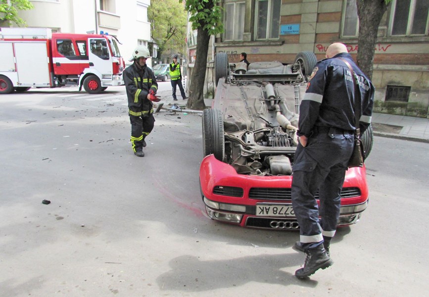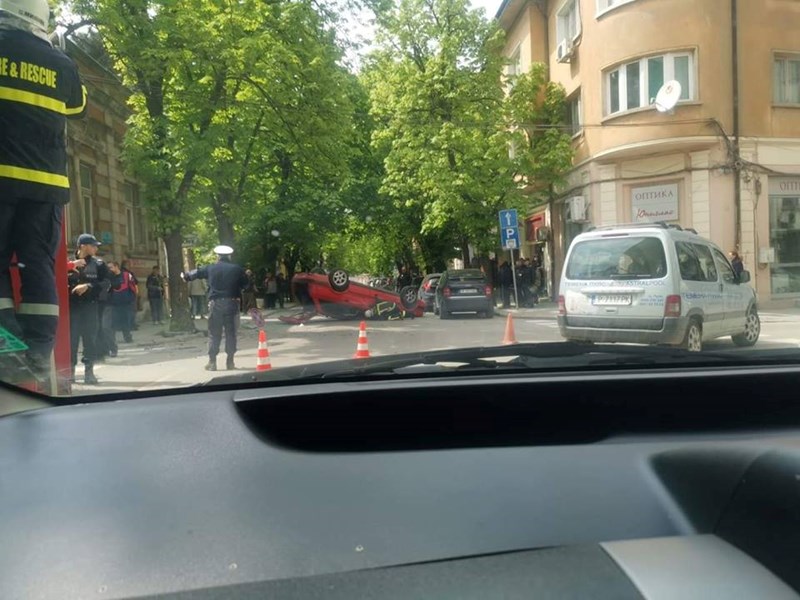 Зрелищна катастрофа стана в ранния следобед на улица "Константин Иречек "в центъра на Русе.