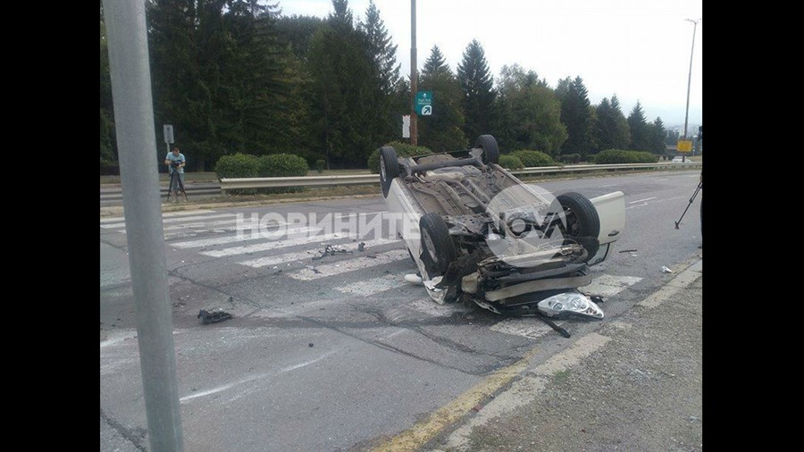 Третият автомобил, шофиран от млада жена от Перник, се движи с несъобразена скорост и не успява да спре навреме. След като натиска спирачките докрай, шофьорката се опитва да мине между двете коли, но от удара автомобилът се преобръща и пада по таван на платното.