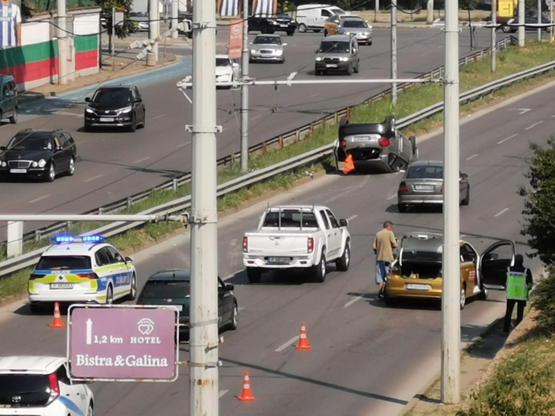 Кола се преобърна по таван на булевард "Христо Ботев"