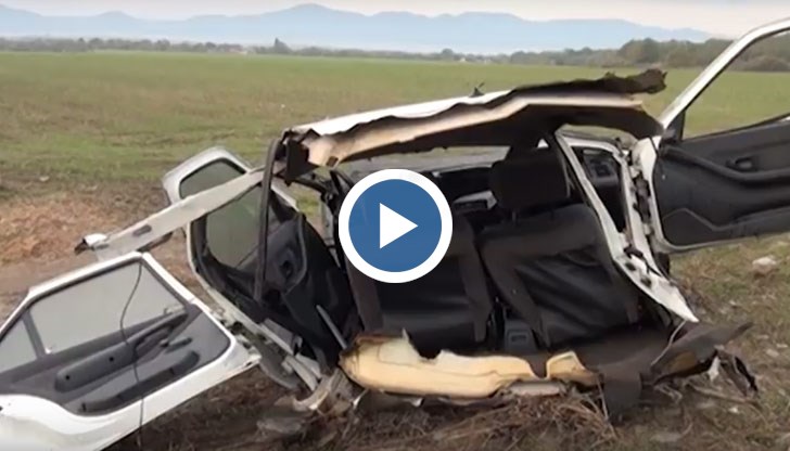От удара колата се е разполовила, като задната й част е излетяла на 60 метра от предната.