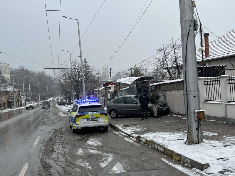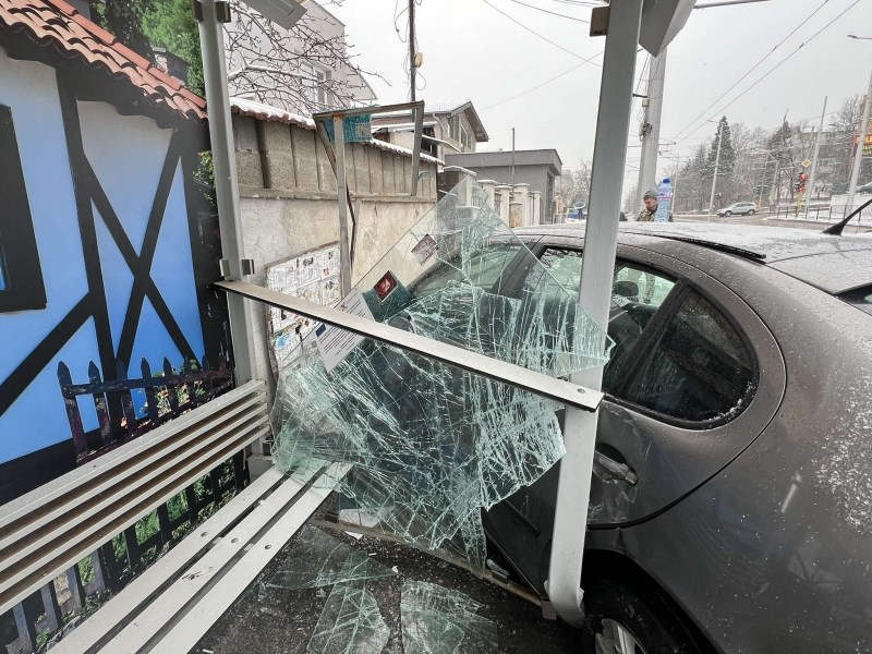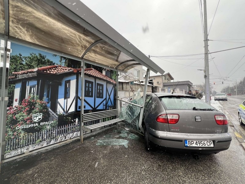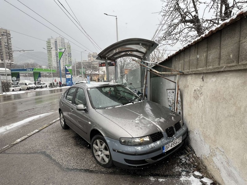 19-годишен водач на лек автомобил "Сеат" е загубил контрол над возилото при опит да се престрои от едната в другата лента. Заради хлъзгавата настилка автомобилът се е завъртял и се е забил в спирката на градския транспорт.