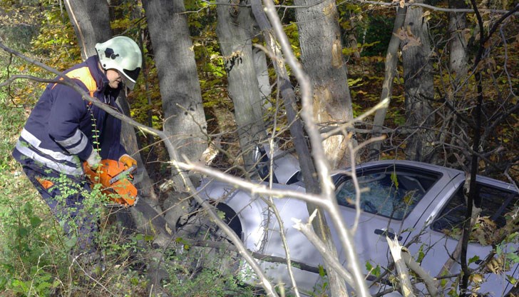 Автомобилът е загубил контрол и се е ударил в крайпътно дърво. До пристигане на мястото на катастрофата пътуващите са успели да излязат от колата.