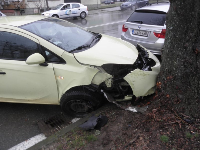 Кола се заби в дърво в Благоевград