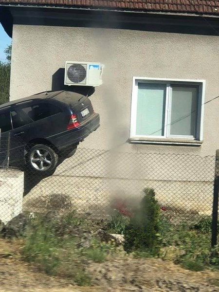 Инцидентът е станал този следобед на улица „Акация“, на завоя на излизане от Гложене, в посока Бутан, като се е разминал без пострадали. Лекият автомобил "Мерцедес" не е успял да вземе завоя и е влетял направо в двора на Георги Лалов, като се е кантаросал върху циментов блок от оградата на имота. Според очевидците зад волана е седяла жена, на която вероятно ѝ е прилошало.