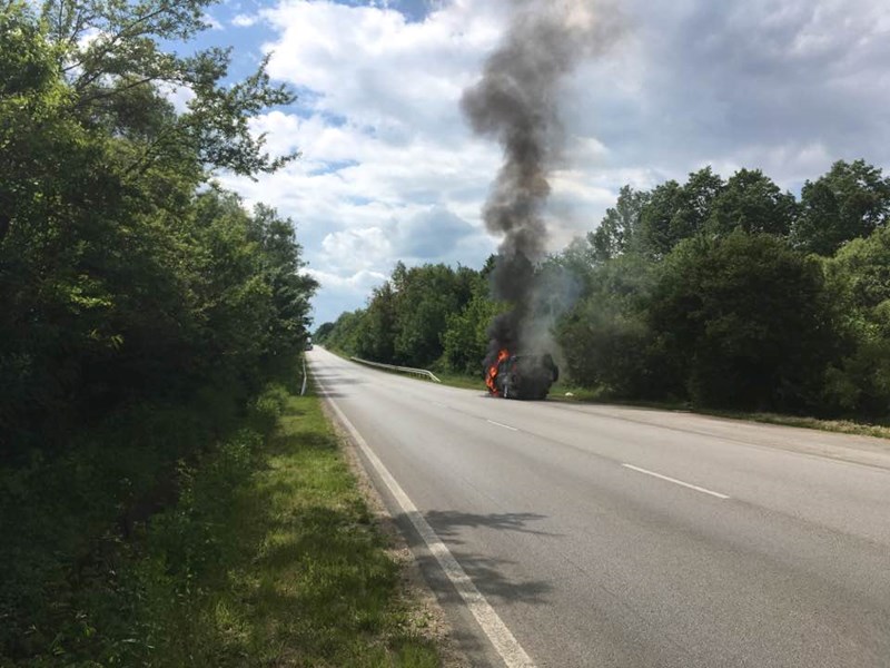 Това става ясно от негова публикация в профила му във Фейсбук. Лечев е заснел горящия автомобил по средата на двулентов път, пише OFFNews.