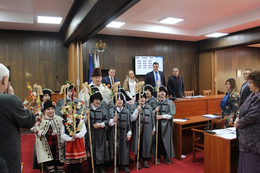 Коледарчета от Основно училище "Христо Смирненски", кв. "Долапите" днес наричаха за здраве и берекет и пяха традиционни коледни песни на последната за 2019 година сесия на Общинския съвет.