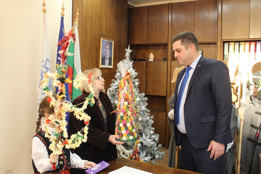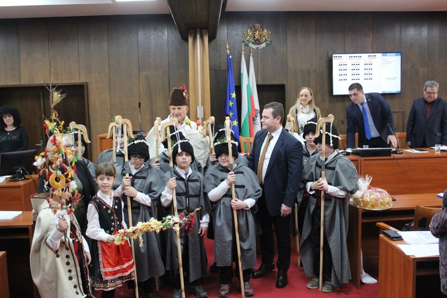 Те сурвакаха кмета Пенчо Милков, а по-рано поздравиха с песни и стихотворения и председателя на Общинския съвет Иво Пазарджиев.