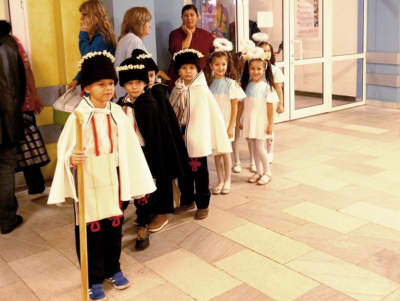 Под ръководството на педагога Денислава Ненова и музикалния педагог Емилия Казакова, децата съчетаха народните традиции на коледуването с модерният прочит на предстоящите празници. Младите момчета изпълниха традиционни коледарски песни, чрез които прогониха злите сили и приканиха здравето и щастието да съпътстват всички през цялата година. За автентичното пресъздаване на ритуала те бяха пременени в празнично народно облекло и накичени с китки и калпаци. Момичетата, превърнати в снежинки, освен с песни зарадваха публиката и с танци.