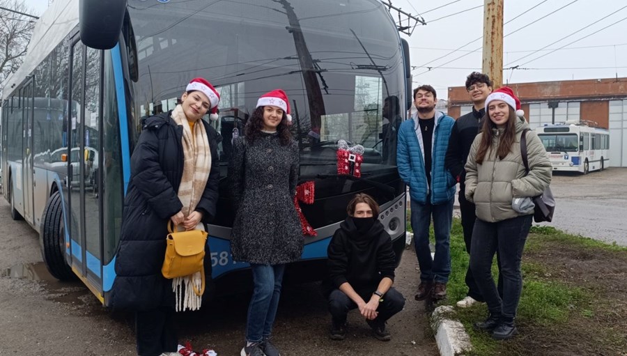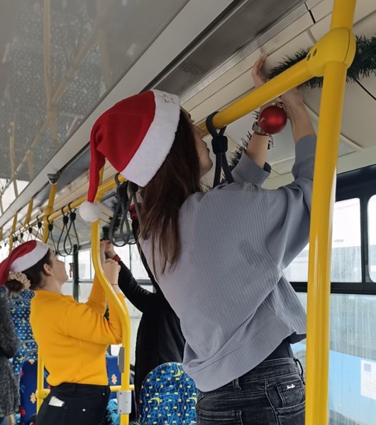 Доброволци от Младежкия парламент преобразиха превозните средства на "Общински Транспорт Русе" с коледна декорация