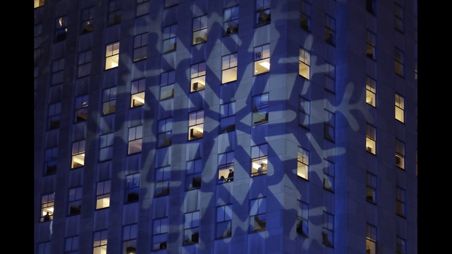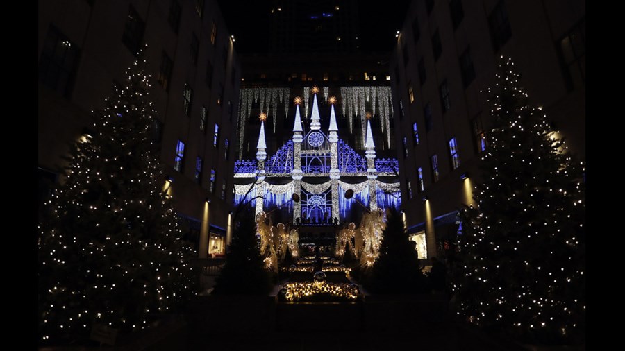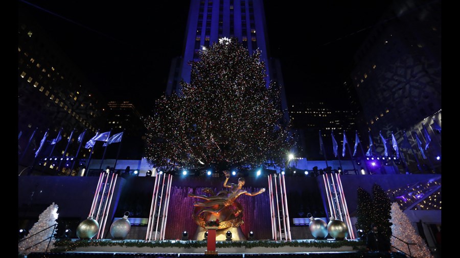 Кметът Бил де Блазио включи в 20:55 часа светлините, които осветиха високия близо 23 метра и тежащ над 12 тона норвежки смърч, украсен с 50 000 многоцветни енергоспестяващи лампички, захранвани от слънчеви батерии.