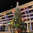 Коледният дух завладя Русе тази вечер, когато светлините на празничната елха озариха площада пред сградата на Общината. За трета поредна година естественото дърво се превърна в символ на коледно-новогодишните празници, украсено с впечатляващи светещи елементи и празнични фигури.