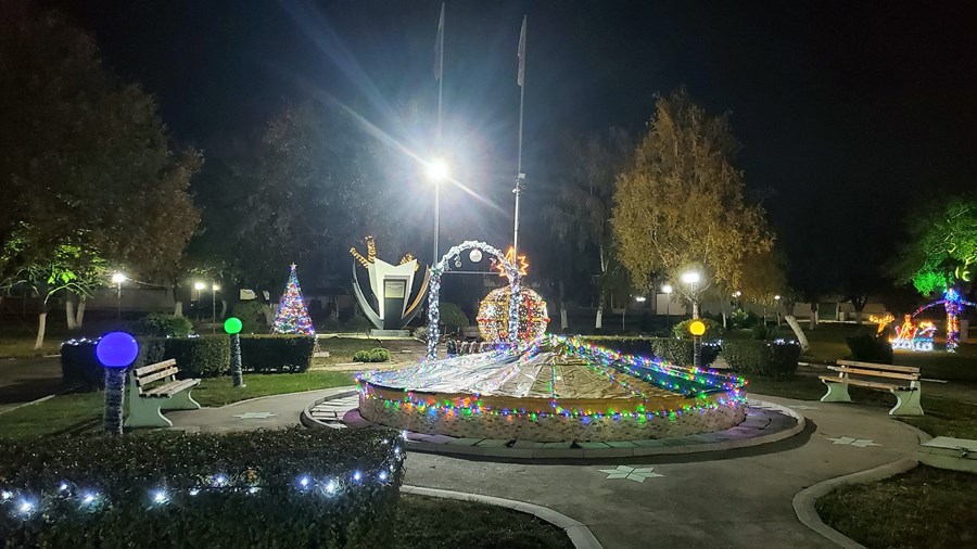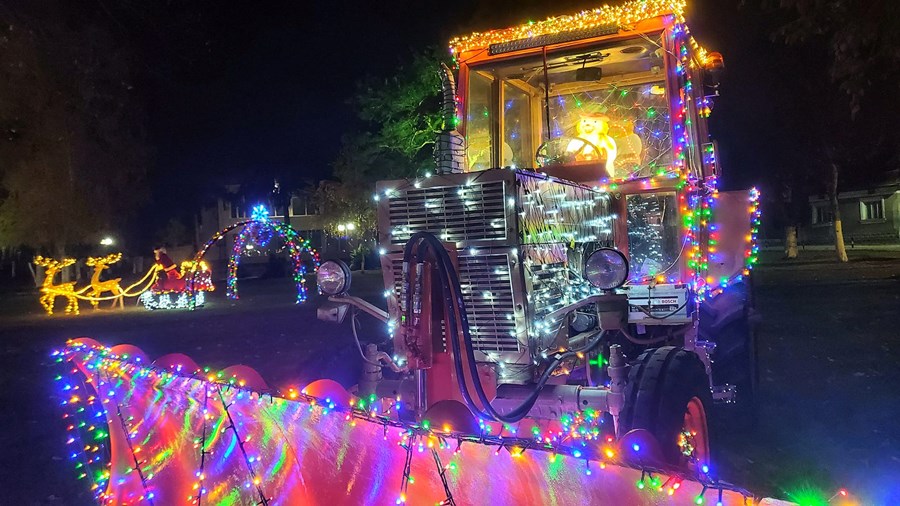 Тракторът на кметството в русенското село Сандрово грейна в разноцветни празнични светлини. Центърът на населеното място прилича на коледна приказка с чудната си украса и радва душите на малки и големи.